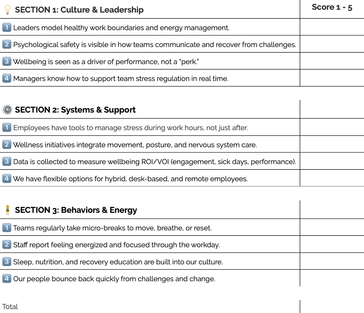 This quick assessment helps you see whether your workplace culture, systems, and daily habits support real resilience or just manage burnout after it happens.